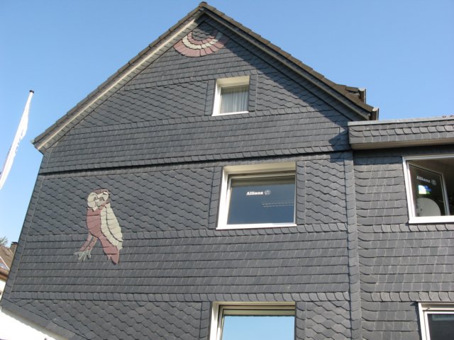 Schiefer ein traditioneller Baustoff der den Wandel der Zeit mit Bravour bestanden hat. Ob an Dach und Wand mit den unterschiedlichsten Deckungen und Formaten bis hin zum Farbschiefer lassen sich herrliche Arbeiten an Gebäuden herstellen, die zeitlos sicher und wirtschaftlich sind. Durch ständige Überarbeitung und Weiterentwicklung, z. B. dachintegrierte Photovoltaik-Systeme, wirtschaftlichere und neue Deckungen ist und bleibt Schiefer ein traditionelles und langlebiges Material für Dach und Wand.